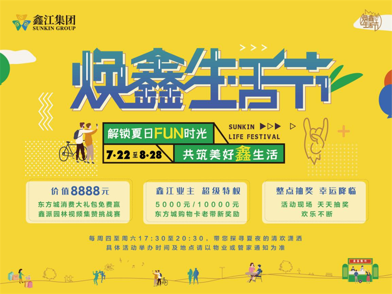 (This SUNKIN Life Festival will be held in the SUNKIN’s delivered communities from 17:30 to 20:30, Thursday to Saturday, during the period from July 22 to August 28. In case of bad weather and other force majeure factors, this event will be postponed. The time and place of event will be subject to the service or steward notice.)
