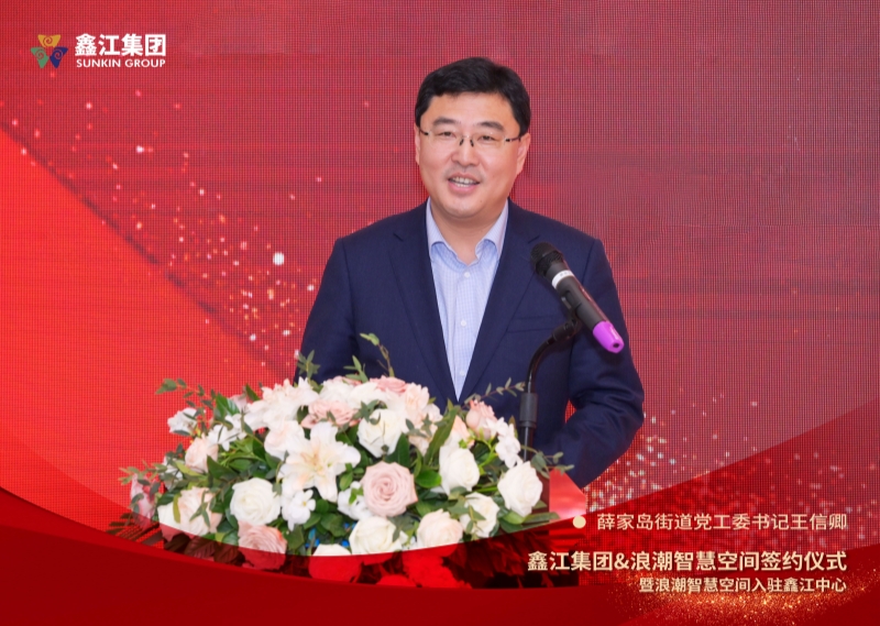 簽約儀式上,鑫江集團董事長方潤龍、浪潮智慧空間董事長吳向輝分別發表精彩致辭。王信卿代表薛家島街道黨工委對協議的簽署表示祝賀。
