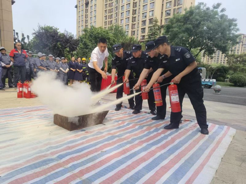 01 消防應急演練 模擬突發火情,重點檢驗初期火災撲救、疏散引導、消防設施聯動及緊急救護流程。鑫江物業工作人員反應迅速,滅火器操作規范,疏散路線清晰高效,充分體現了日常訓練的扎實功底。